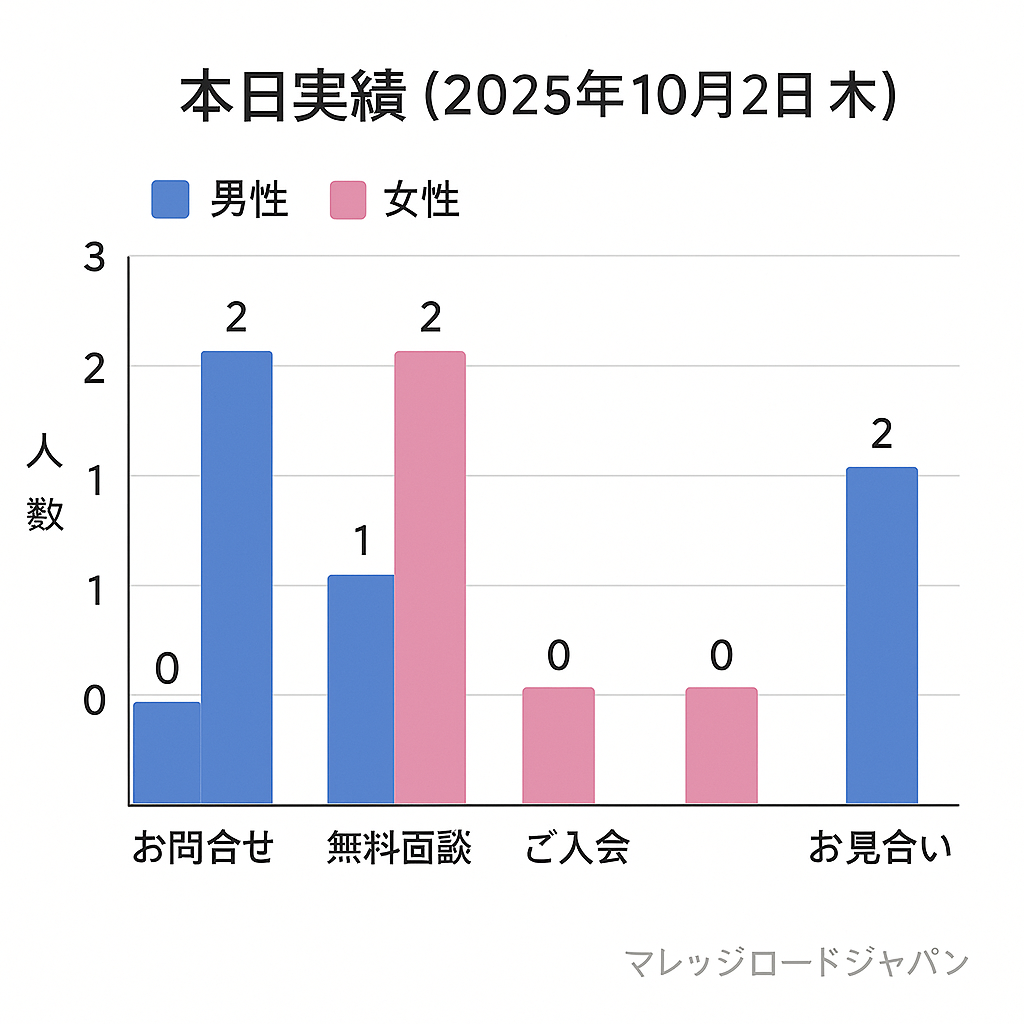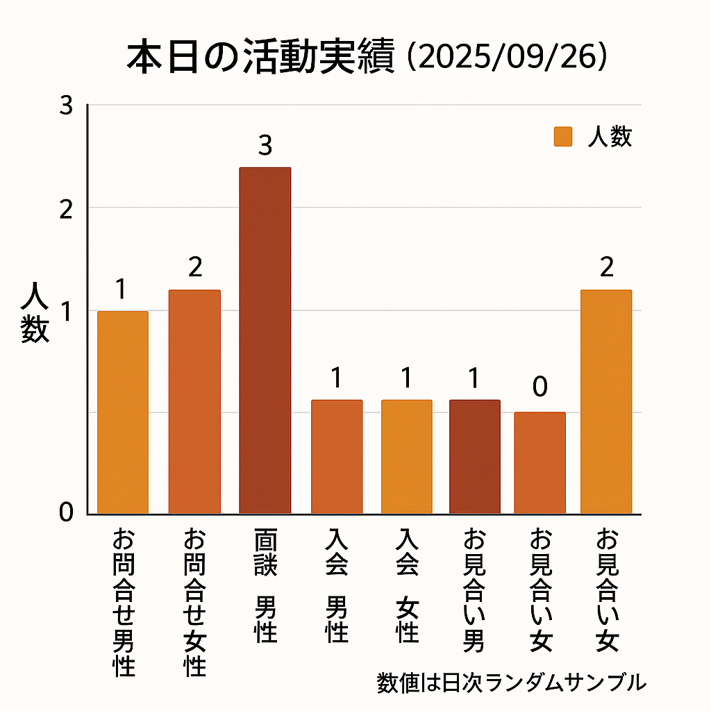 - 目標期限(半年〜1年)を先に設定し、面談ごとにKPI(申受け数、お見合い数、仮交際率)を可視化しましょう。