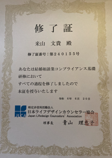 また、当相談所代表は東証プライム上場のIBJよりサービス提供の許可を得て会員様へ婚活サービスの提供を真摯に行っております。